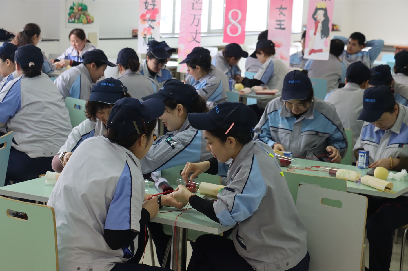 餐后,公司、工會(huì)特別策劃的“巧手織幸福”手鏈DIY活動(dòng)將氣氛推向高潮。女職工們圍坐一堂,挑選飾品、編織絲線,互相交流技巧?;顒?dòng)現(xiàn)場(chǎng)歡聲不斷,條條精致手鏈見證著姐妹情誼。